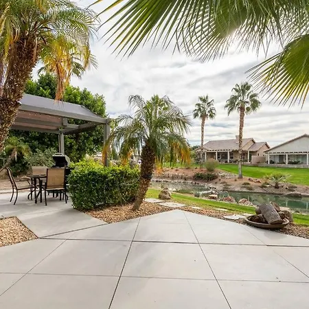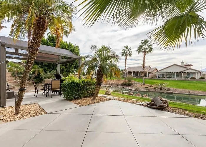 The 3-bedroom Coachella And Stagecoach Festival Home- 5 Mins To Empire Polo Festival Ground features a patio with views of the lake as well as a private swimming pool. Offering Wi-Fi, the villa is located within 25 minutes' walk of Empire Polo Club.